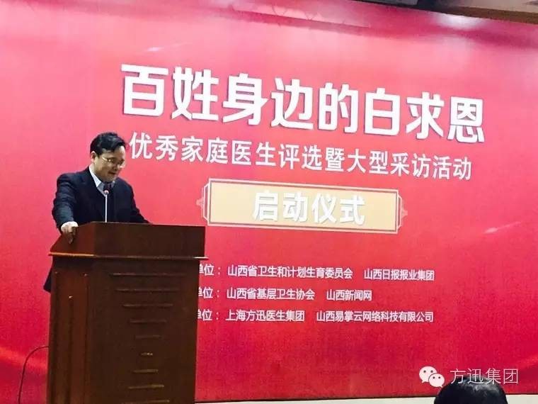 11月28日下午,“百姓身邊的白求恩——優(yōu)秀家庭醫(yī)生評選暨大型采訪活動”啟動儀式,在山西日報報業(yè)集團一層會議廳舉行?;顒佑缮轿魇⌒l(wèi)生和計劃生育委員會、山西日報報業(yè)集團指導(dǎo),山西省基層衛(wèi)生協(xié)會、山西新聞網(wǎng)主辦。上海方迅醫(yī)生集團、山西易掌云網(wǎng)絡(luò)科技有限公司作為贊助單位參加了此次活動。